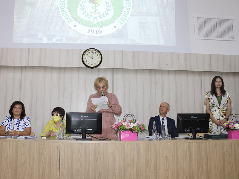 Голова вченої ради професор Т. О. Перцева та голова постійної комісії з охорони здоров’я міської ради міста Дніпра Є. М. Дитятковська вручили численні грамоти і подяки викладачам з нагоди Дня медичного працівника.