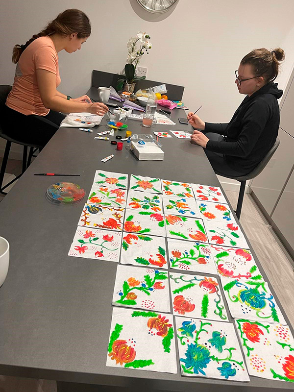 Ще однією родзинкою вечора стала «петриківка». Петриківський розпис – це не лише народне мистецтво, що зберігає традиції оздоблення українського житла, але й сучасний живопис, який розвивається та набуває нових рис. 5 грудня 2013 року петриківський розпис був включений до Репрезентативного списку ЮНЕСКО. Наші дівчата розмалювали серветки у техніці петриківського розпису, викликавши жвавий інтерес та захоплення відвідувачів заходу.
