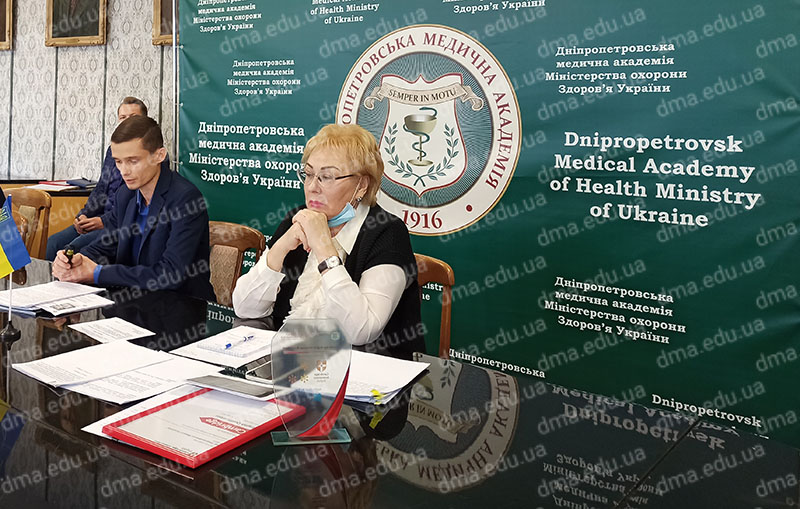 Засідання проводилось у дистанційному форматі, онлайн-трансляція здійснювалась із конференційної зали адміністративного корпусу. Відкрила його голова вченої ради, ректор, професор Т.О. Перцева, яка розповіла, що медична академія отримала сертифікат від Кембриджського університету, який надає можливість готувати студентів та викладачів до міжнародних іспитів Cambridge English Assessment.