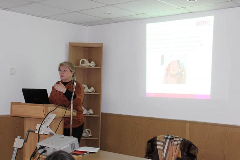 На семінарі виступила  Ніна Шепеленко, вчитель-методист, спеціаліст Вищої категорії, фахівець з моніторингу роботи систем імплантаційного слухопротезування ДУ «Інститут отоларингології ім. проф. О.С. Коломійченка НАМН України» (м. Київ).