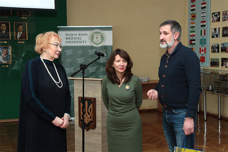Після захоплюючої подорожі у світ медицини музеями та кафедрами університету перший заступник голови Губиниської селищної ради Антон Олександрович Борисенко подякував керівництву ДДМУ та передав ректору Тетяні Олексіївні Перцевій пам’ятний подарунок – скриньку, авторську роботу майстрині Миколаївського розпису Ганни Бирси.