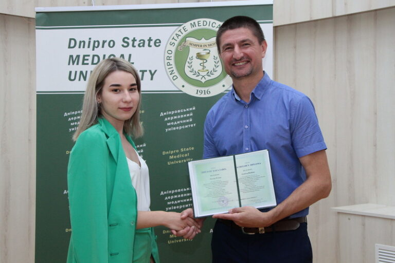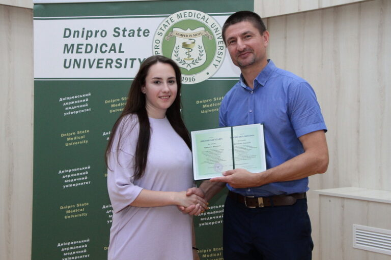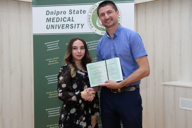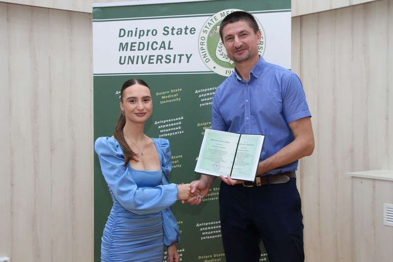 Випускників привітав заступник декана медичного факультету ДДМУ Олександр Адольфович Алєксєєнко. Він побажав молоді успіхів на медичній ниві, кар’єрного зростання, неодмінного самовдосконалення, аби завжди  відповідати новітнім викликам  сучасної медицини, бути на вістрі часу.
