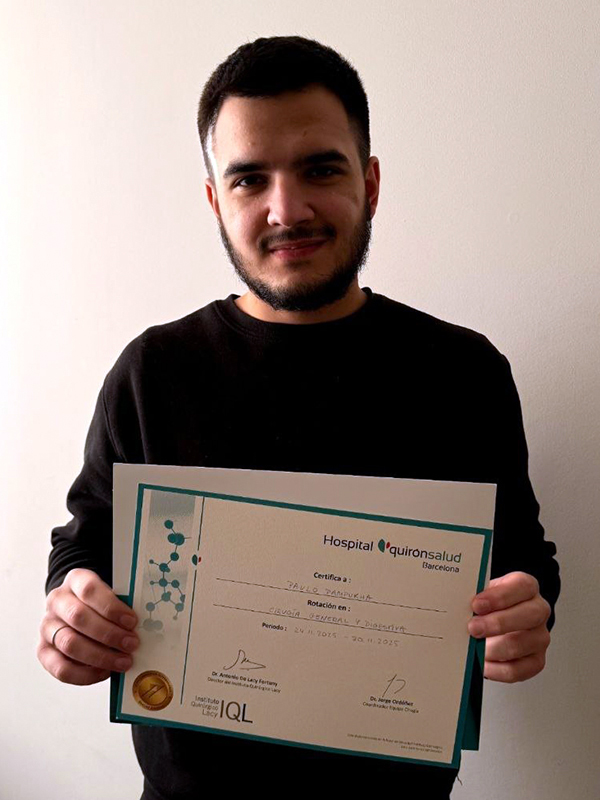 Цей досвід дозволив нашому студенту глибше зрозуміти принципи роботи іспанської хірургічної школи, яка поєднує високий рівень технічної підготовки, доказову медицину та активне впровадження інноваційних мінімально інвазивних технологій. Отримані знання та практичні навички є надзвичайно цінними для його подальшого професійного розвитку та зростання, а також є корисними для навчального процесу й клінічної практики в ДДМУ.