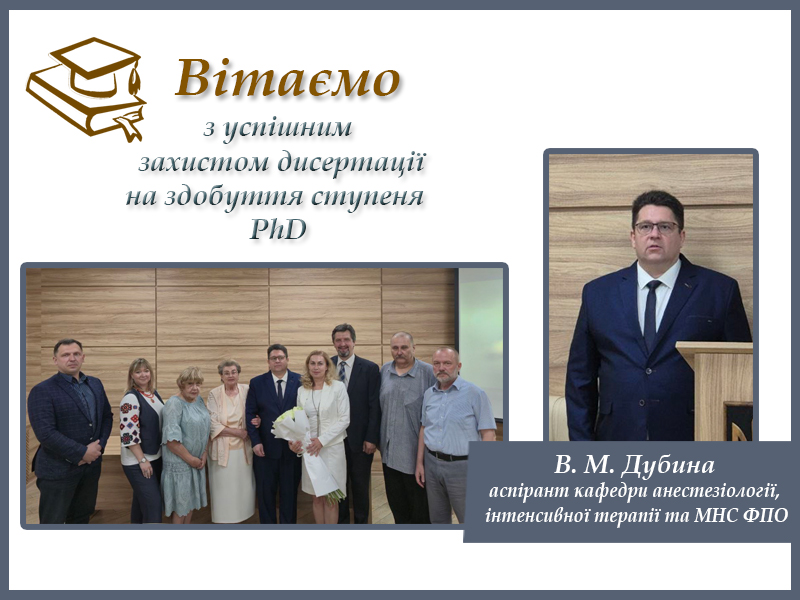 У ДДМУ відбувся захист дисертації здобувача ступеня доктора філософії – аспіранта кафедри анестезіології, інтенсивної терапії та МНС ФПО ДДМУ Дубини Володимира Миколайовича.