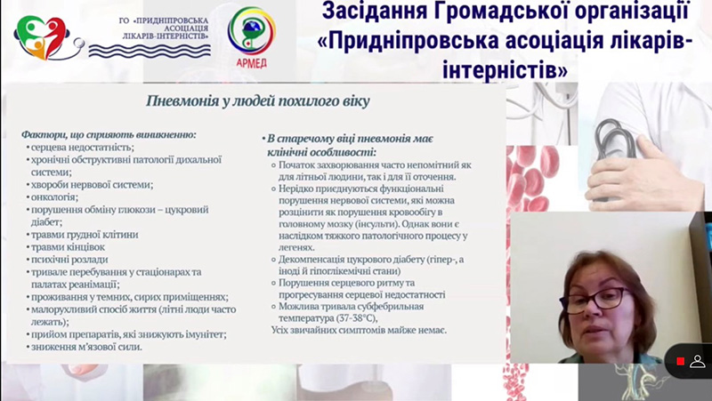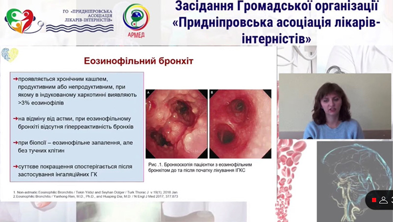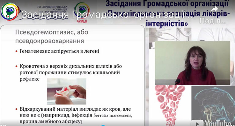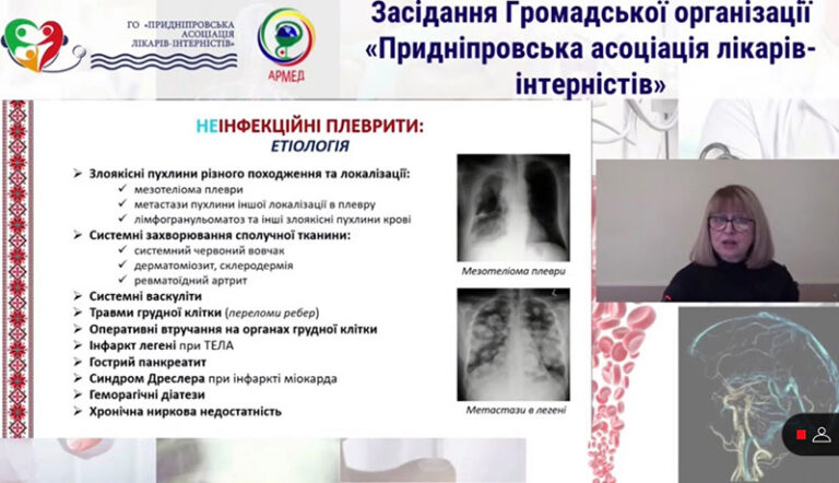 З доповіддю щодо діагностики та лікування хворих з плевральними випотами виступила завідувачка кафедри внутрішньої медицини 1, професорка Людмила Іванівна Конопкіна. Важливе питання щодо висвітлення такого діагнозу, як гіпостатична пневмонія порушила доцентка Тетяна Володимирівна Кірєєва. Про те, коли треба заспокоїти пацієнта, а коли не зволікати з допомогою при кровохарканні доповіла доцентка Олена Валеріївна Мироненко. Кандидатка медичних наук Юлія Василівна Губа дослідила питання гіпереозинофілії у пацієнтів з респіраторною патологією, а докторка філософії Марія Андріївна Крихтіна впорядкувала знання щодо уражень легень фіброзуючого характеру. Підсумовуючи, доцентка Наталія Анатоліївна Саніна довела доцільність і необхідність реабілітаційних заходів для пацієнтів пульмонологічного профілю.