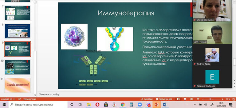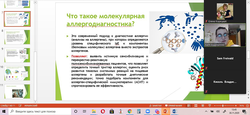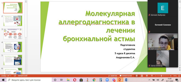 30 листопада 2020 вiдбулося онлайн-засiдання студентського наукового товариства на тему “Сучаснi дiaгностичнi методики в алергологii. Молекулярна алергодiагностика.”