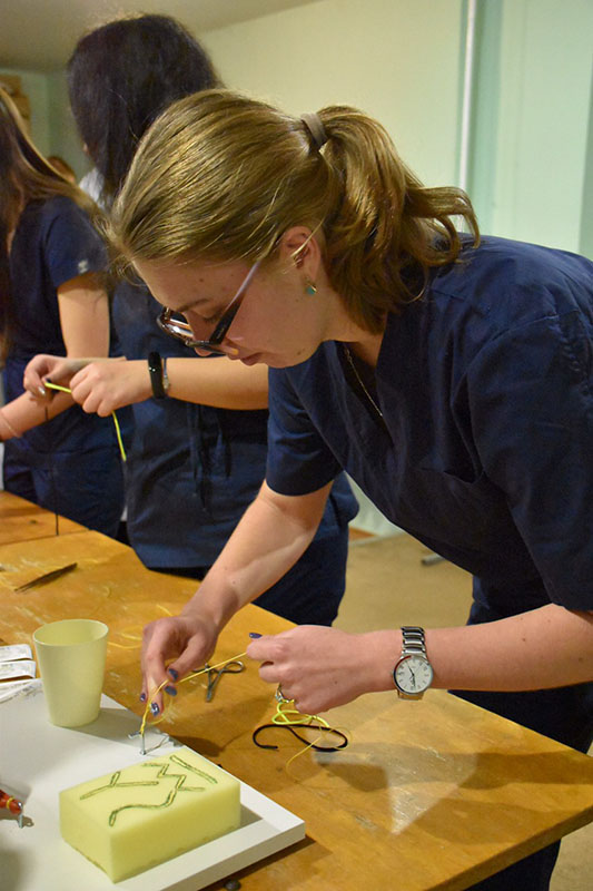 На ньому розглядались актуальні питання хірургічної практики. Засідання проводили викладачі кафедри, які ділилися своїми знаннями і досвідом з молоддю, розповідали про розробки, впровадження та застосування лапароскопічних операцій. Студенти пройшли тренінг з практичних навичок та взяли участь у майстер – класі з хірургії. Наприкінці засідання майбутні медики відповіли на запитання вікторини. Найкмітливіші з учасників вікторини отримали в дарунок наукові роботи керівника гуртка, завідувача кафедри хірургії 2, професора О.Б. Кутового.