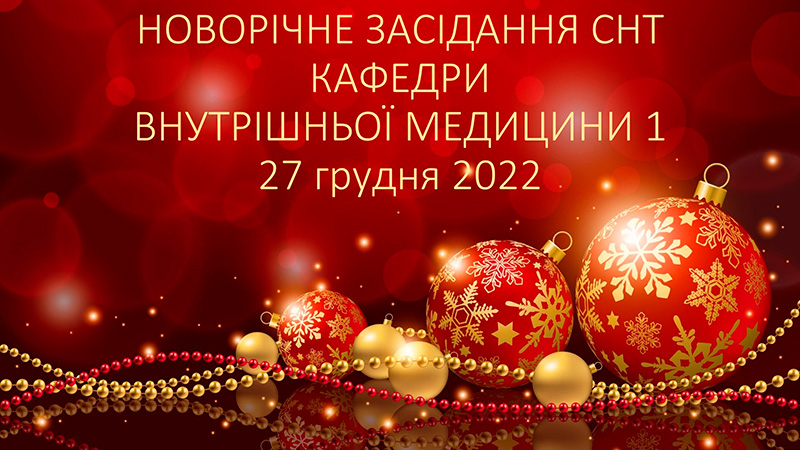 Наприкінці грудня на кафедрі внутрішньої медицини 1 відбулося святкове, новорічне засідання студентського наукового гуртка у форматі онлайн-вікторини. Зустріч гуртківців проходила в надзвичайно теплій, дружній атмосфері. Зі словами привітання звернулися в.о. завідувача кафедри професор Людмила Конопкіна, доцент Олена Мироненко, асистент Тамара Турлюн.