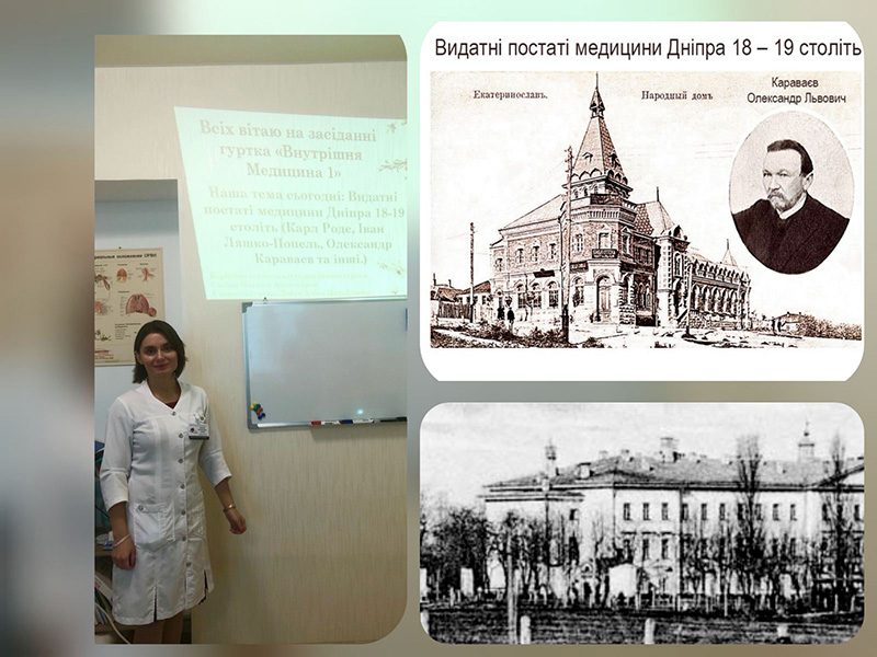 Студенти підготували доповіді про відомих лікарів нашого краю. Перша презентація студентів 4-го курсу медичного факультету Анастасії Крутько та Льва Цимбала була присвячена відомому лікарю Карлу Роде, німцю за походженням, який присвятив усе своє життя розвитку медицини в Дніпрі. Він є одним із засновників нинішньої Обласної клінічної лікарні ім. І. І. Мечнікова, а також став бодай не першим професійним фармацевтом Січеславщини. До речі, Аптекарська балка отримала свою назву завдяки тому, що саме там Карл Роде вирощував лікарські рослини, які використовував для своїх славнозвісних «родевських порошків».