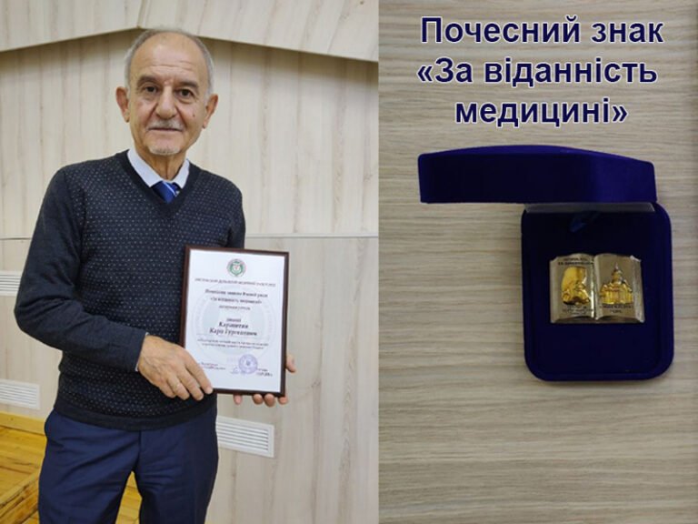 Почесним знаком «За відданість медицині» за багаторічний вагомий внесок в розвиток медицини та охорони здоров’я та з нагоди ювілею був відзначений доцент Карп Гургенович Карапетян.