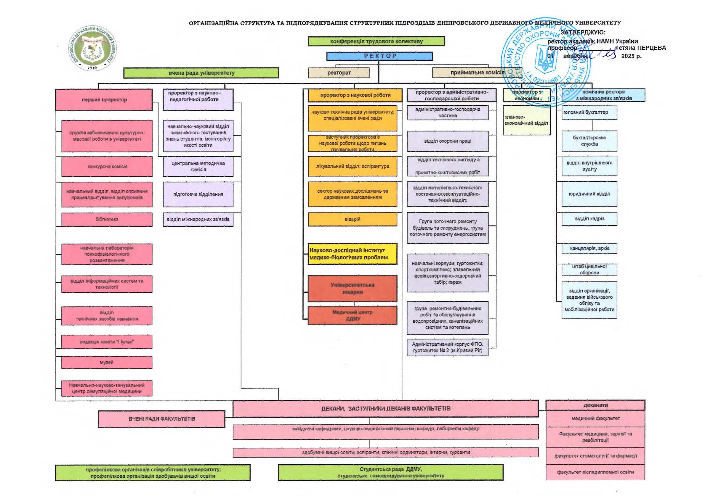 Організаційна структура та підпорядкування структурних підрозділів ДДМУ